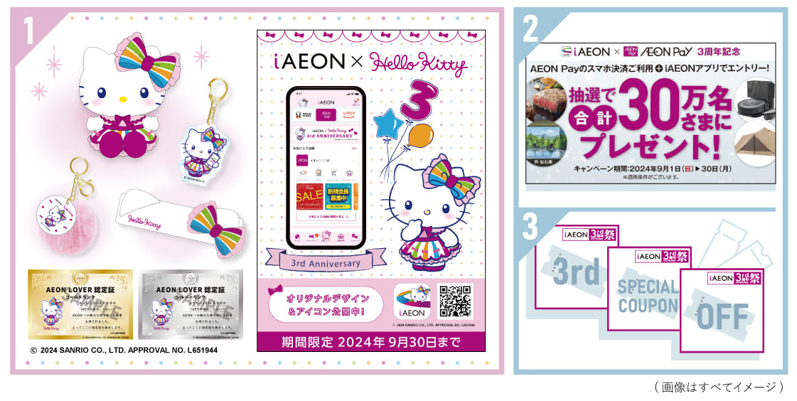 イオンのアプリ「iAEON」が3周年記念キャンペーン開催、ハローキティとの特別コラボ企画も実施
