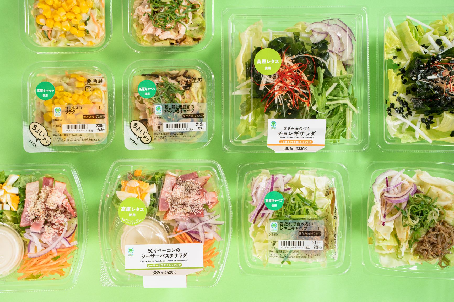 ファミマが旬の野菜を味わうサラダ・ちょいデリ5種類を発売、高原キャベツや高原レタスを使用