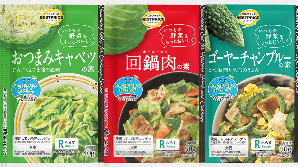 イオンは5月31日(金)より順次※1)、全国の「イオン」「イオンスタイル」「マックスバリュ」など約1,590店舗※2)にて、製造工程で廃棄となるキャベツの芯を活用した「トップバリュベストプライス青椒肉絲の素」など、野菜を簡単・便利に食べていただける合わせ調味料計6品目を発売する。 イオンは、2017年に「イオングループ食品廃棄物削減目標」を掲げ、新しい技術の導入や販売方法の工夫による食品廃棄物・ロスの削減に取り組んでいる。商品開発を担うトップバリュでも、「もったいないをおいしく!」をコンセプトにサプライチェーン全体での、食品廃棄物・ロスの削減に向けた商品開発の取り組みを加速し、2024年3月よ…