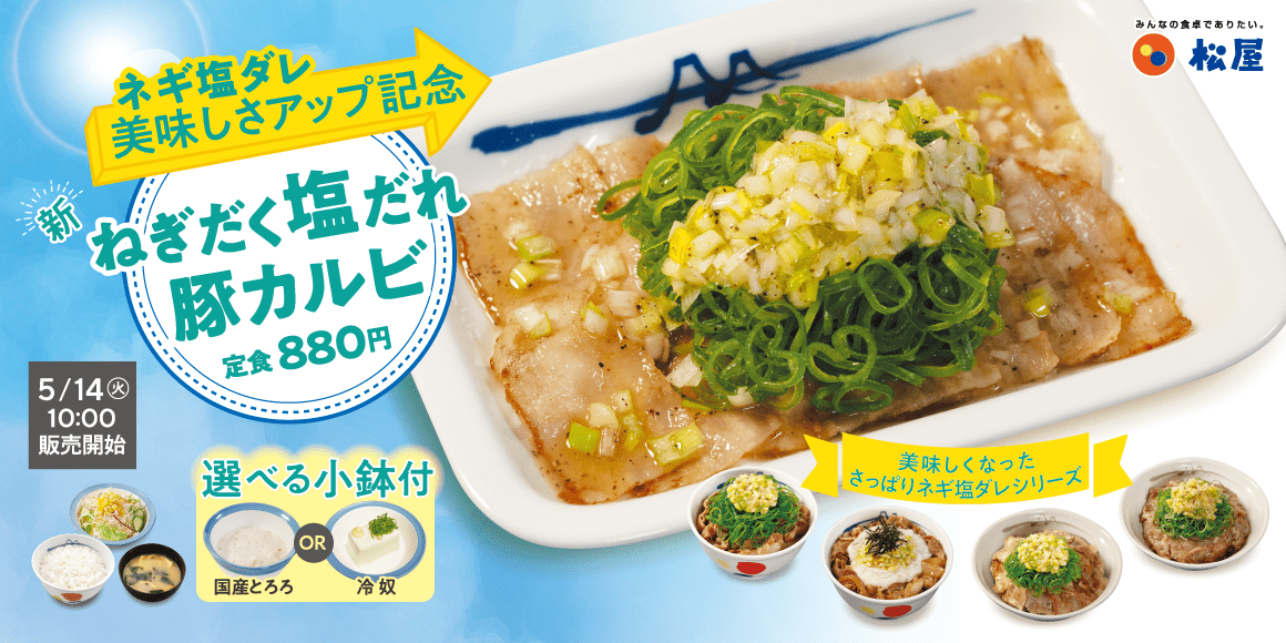 松屋が「ねぎだく塩だれ豚カルビ定食」を発売、ネギ塩ダレがパワーアップ