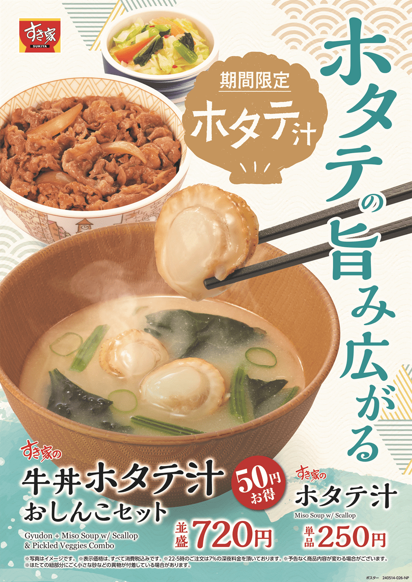すき家が「ホタテ汁」を期間限定で発売、噛むたびに広がる甘みと旨み