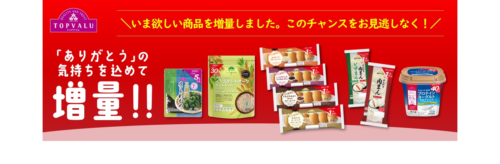 イオンがトップバリュ商品 厳選24品目を数量限定で増量、全国10,000店舗で実施