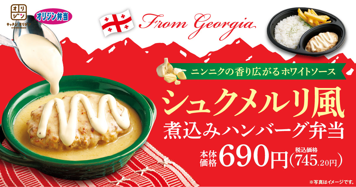 オリジン弁当にて「シュクメルリ風煮込みハンバーグ弁当」が期間限定で発売