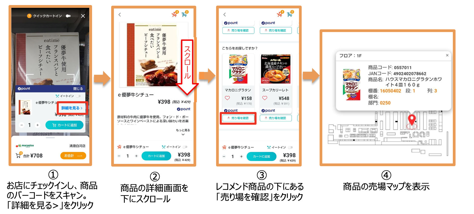 U.S.M.Hが「Scan&Go」の新機能として、レコメンド商品の店内 売場マップ表示を開始