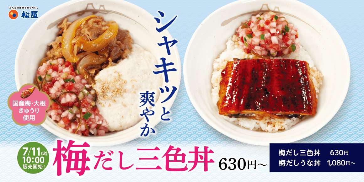 松屋にて「梅だし三色丼」「松屋の梅だしうな丼」が発売