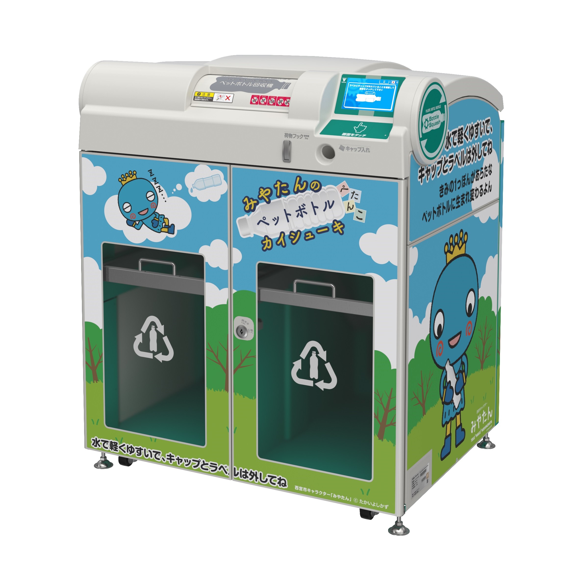 寺岡精工の⼤容量モデルのペットボトル減容回収機「ボトルスカッシュ (DRV-200)」が、兵庫県⻄宮市役所 本庁舎1階へ設置され、3月29日(水)より稼働を開始する。 同製品においては自治体で初の設置となる。本件は、⻄宮市とコカ・コーラ ボトラーズジャパンによる、「ペットボトル資源循環リサイクルに関する事業連携協定」の締結にあたり、市役所来庁者および市職員等への適正なペットボトルの分別の意識啓発を推進する目的で設置されるものとなる。 回収されたペットボトルは連携協定の一環として、「ボトルtoボトル」の水平リサイクルに使用される。 ■ TERAOKA の「ボトルスカッシュ」は、綺麗なペットボトル…