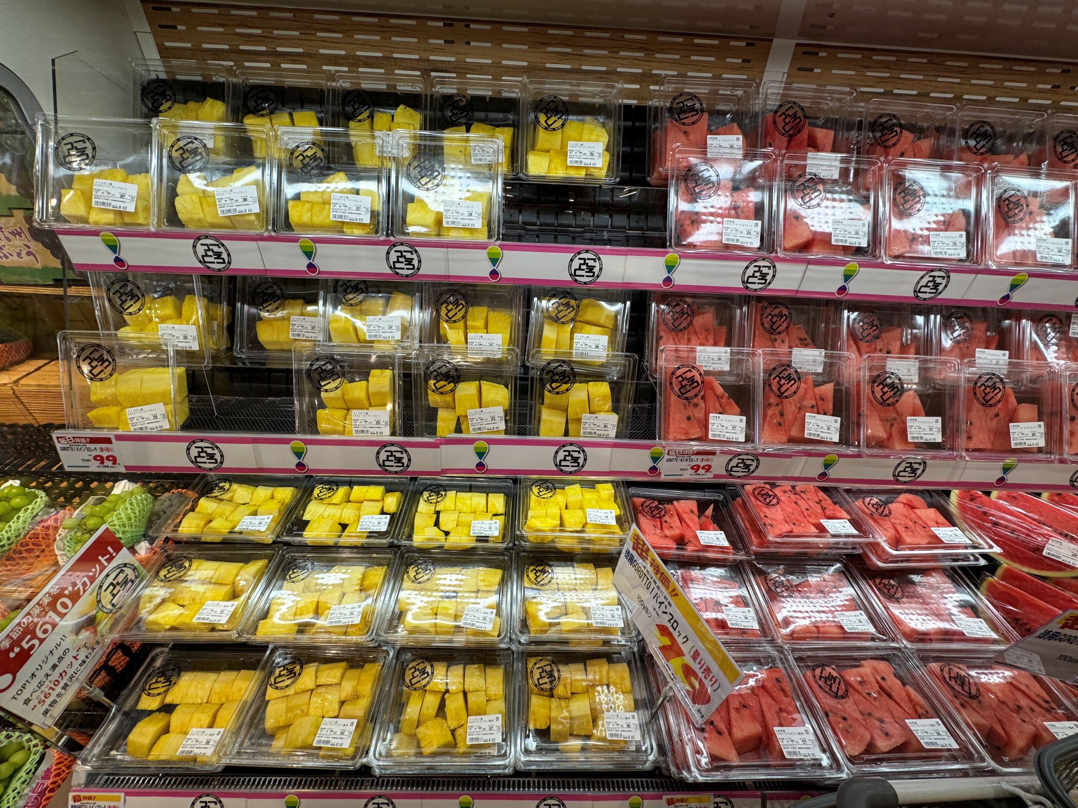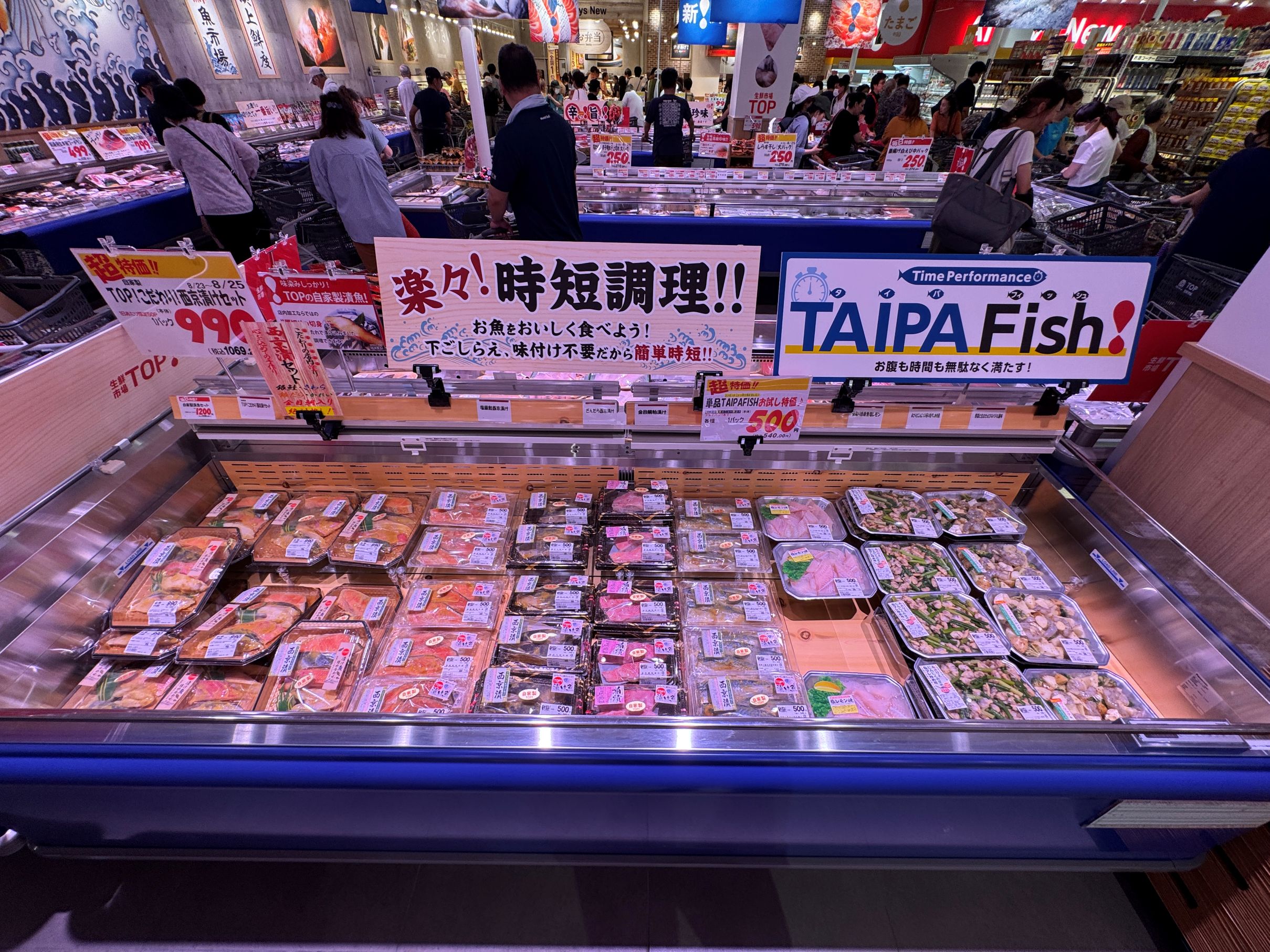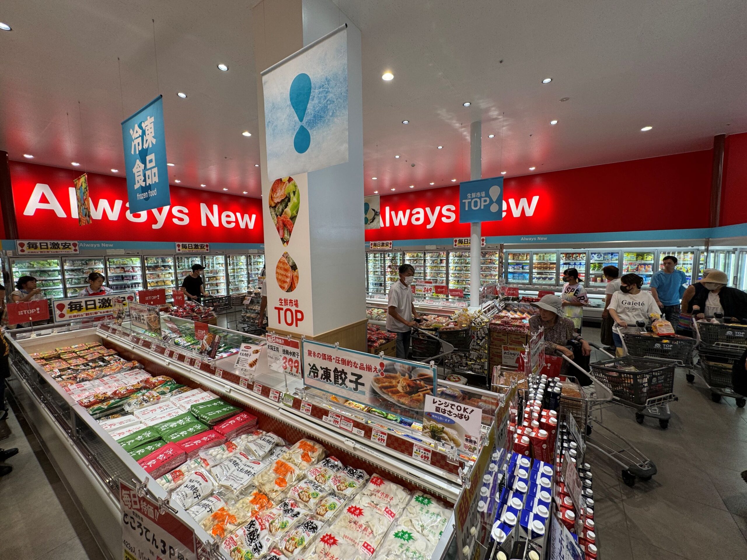 生鮮市場TOP!は、「行くのが楽しくなる食の専門店」をコンセプトに、生鮮強化型のスーパーマーケット(SM)として商品の深掘りの他、差別化に資するような珍しい商品も含めた形のマーチャンダイジングを特徴とする。価格面では低価格訴求を強めたディスカウントに位置づけられるだろう。