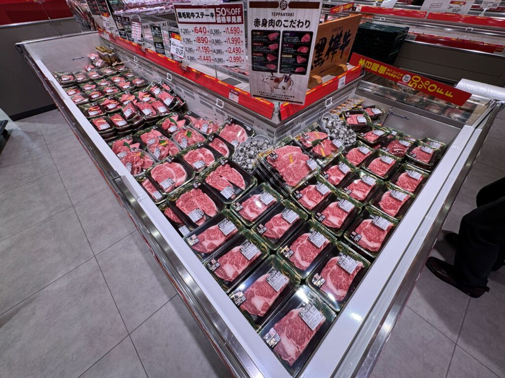 生鮮の精肉では、牛肉をメインとした展開を図り、九州産の「黒華牛」など黒毛和牛のおいしさにこだわると共に平日は使い勝手の良い切り落とし焼肉、週末は厚切り焼肉などを提案し、「毎日焼肉ができる品揃え」を実施。
