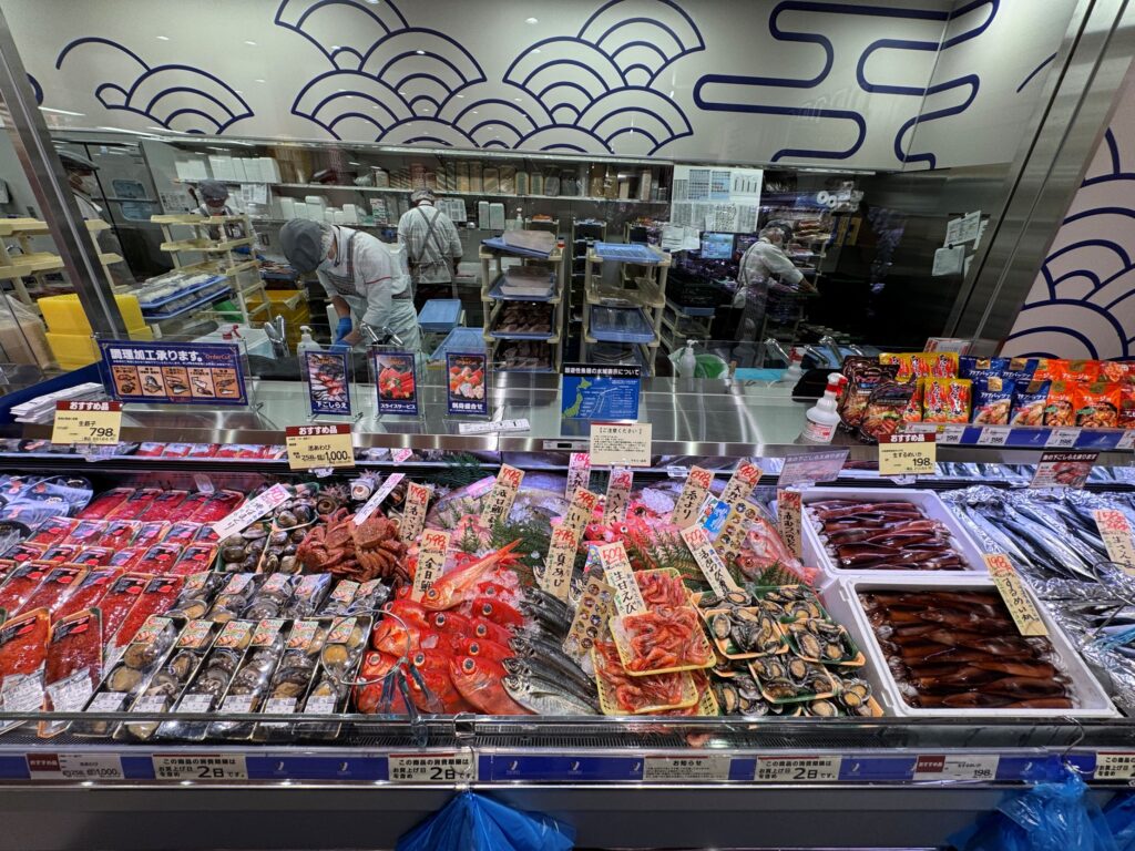 鮮魚では、豊洲市場を活用し、その時季ならではの近海魚を対面販売、「旬を感じる賑わいのある売場」を実現する。対面販売での提案を行うアテンダントも採用、配置し、提案力を高めた。夕方には、調理が手軽な味付けの切り身や、切りたて、造りたての刺身の盛り合わせなどを即食の文脈で品揃えし、その他、簡便商品などを含めクッキングサポートなども活用しながらニーズに合わせて提案する。
