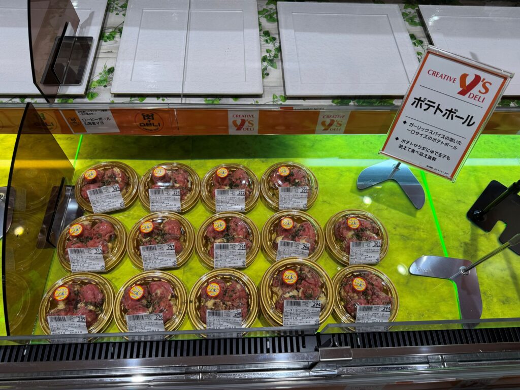 また、頻度品は値頃での提供に努める。豚肉については値頃の輸入豚も品揃えし、価格訴求する他、駅前立地ということで即食ニーズ対応として特に夕方以降はミートデリカなどのつまみ需要に対応する。