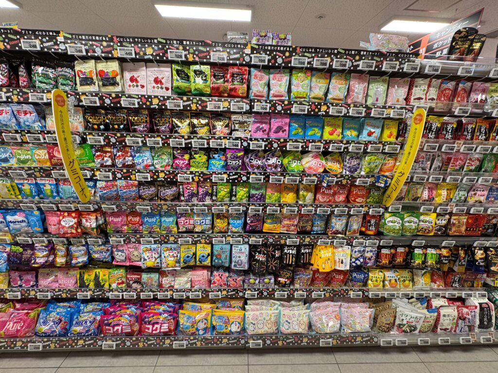 市場が伸びているグミについては同社最大級の3.5尺の展開で、豊富に品揃えし、選べる楽しさを提案。