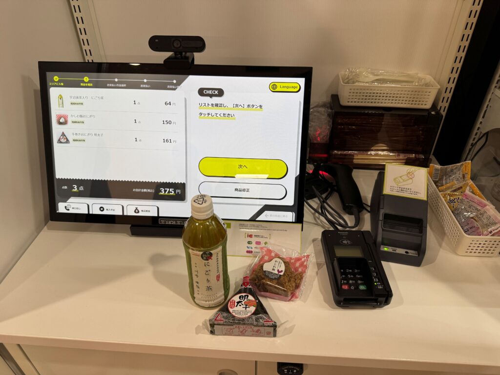 手に取った商品を置くと、カメラと重量センサーで捕捉された情報が表示される。それが正しいかを確認し、決済。仮に異なっていた場合、修正する作業が必要だが、そうした行為も含め、教育と位置付ける