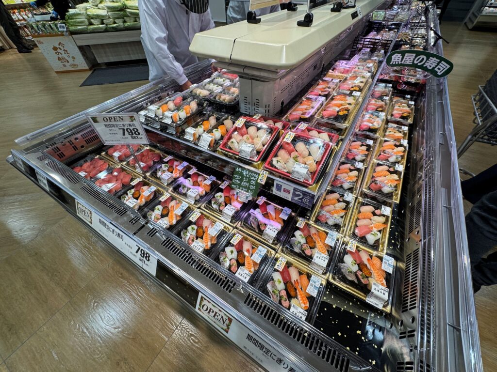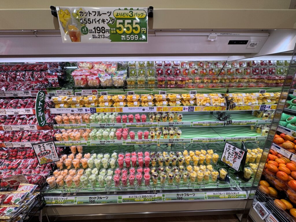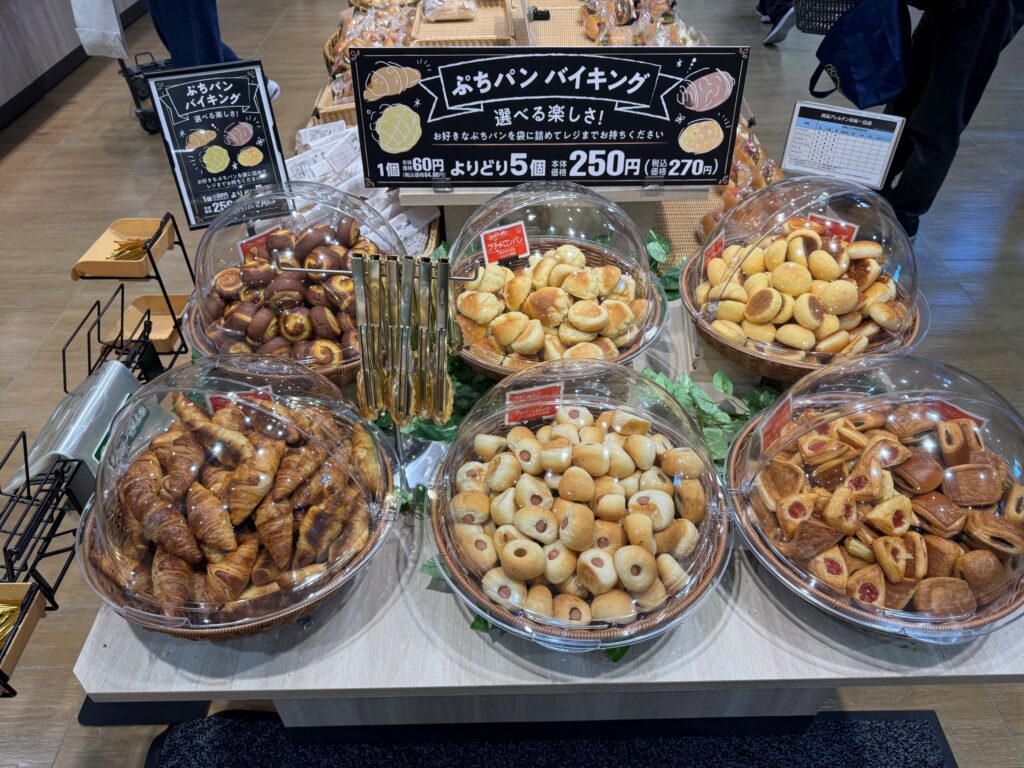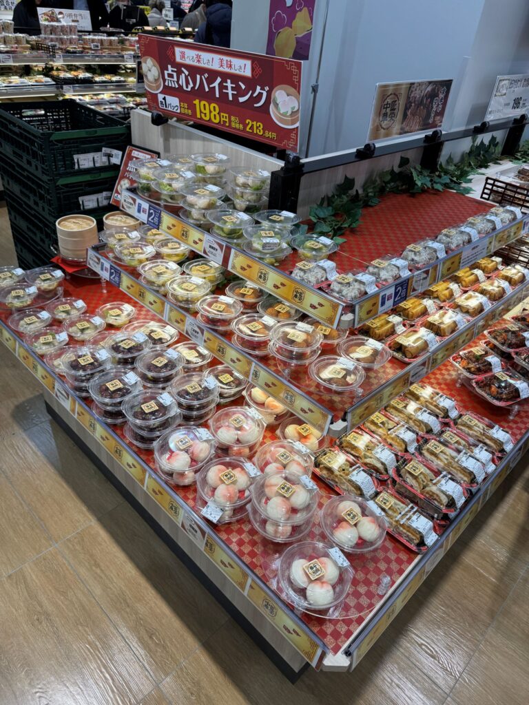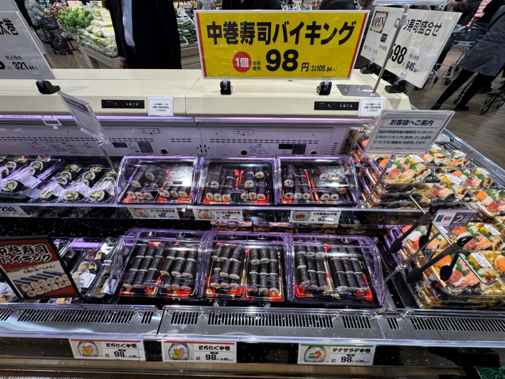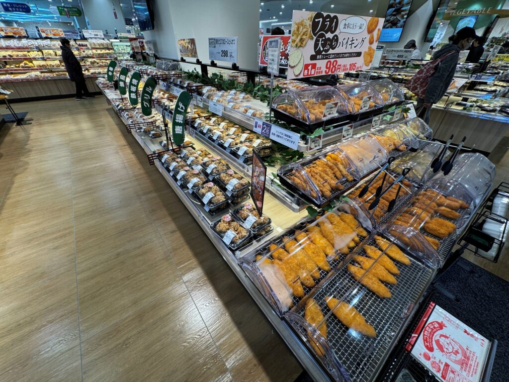 一方で、組み合わせて買うことができるバンドル販売として、巻き寿司やフライ、ベーカリー、カットフルーツの各コーナーで1品ずつ選べるバイキング販売を実施。巻き寿司では歯ごたえあるたくあんを合わせた「とろたく」など4種の中巻寿司、揚げ物ではかき揚げ、コロッケ、白身魚など約10種のフライ、ベーカリーコーナーでは人気のプチチョコデニッシュやミニクロワッサンなど約8種を展開。青果のカットフルーツもバイキング販売することで、ベーカリーとカットフルーツはまとめ買いでさらに買い得になる仕掛けとしている。