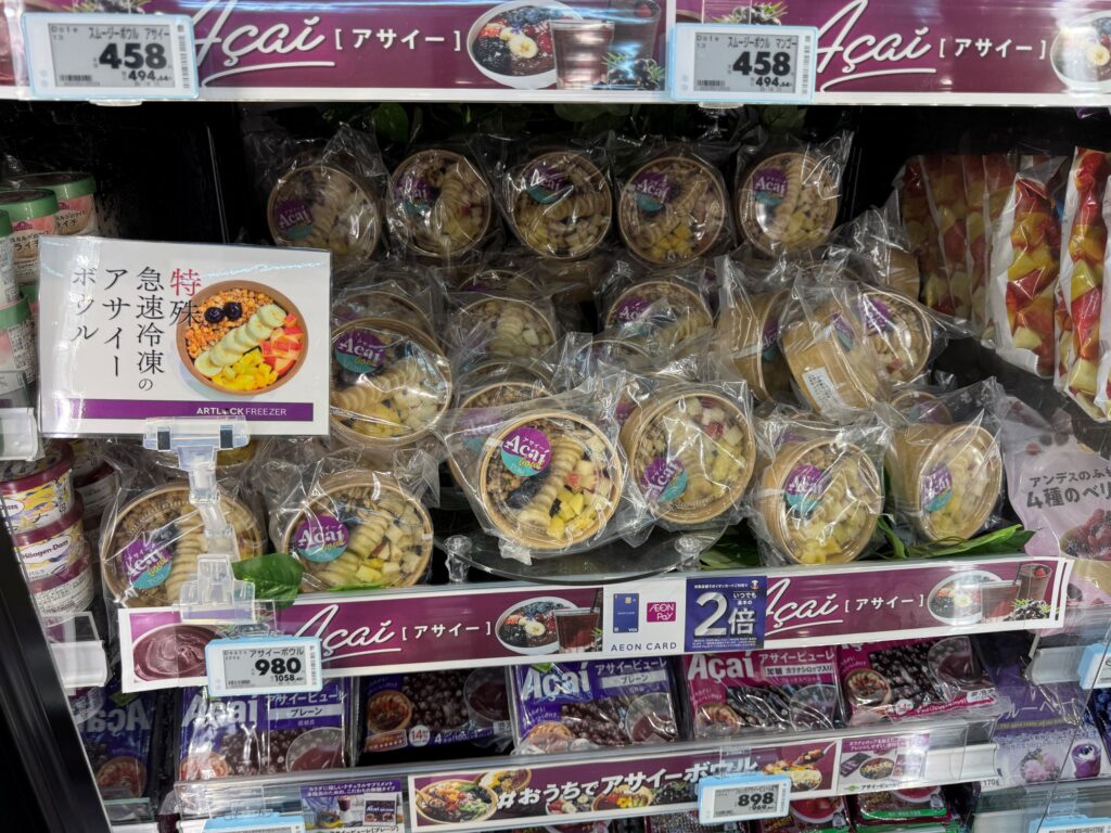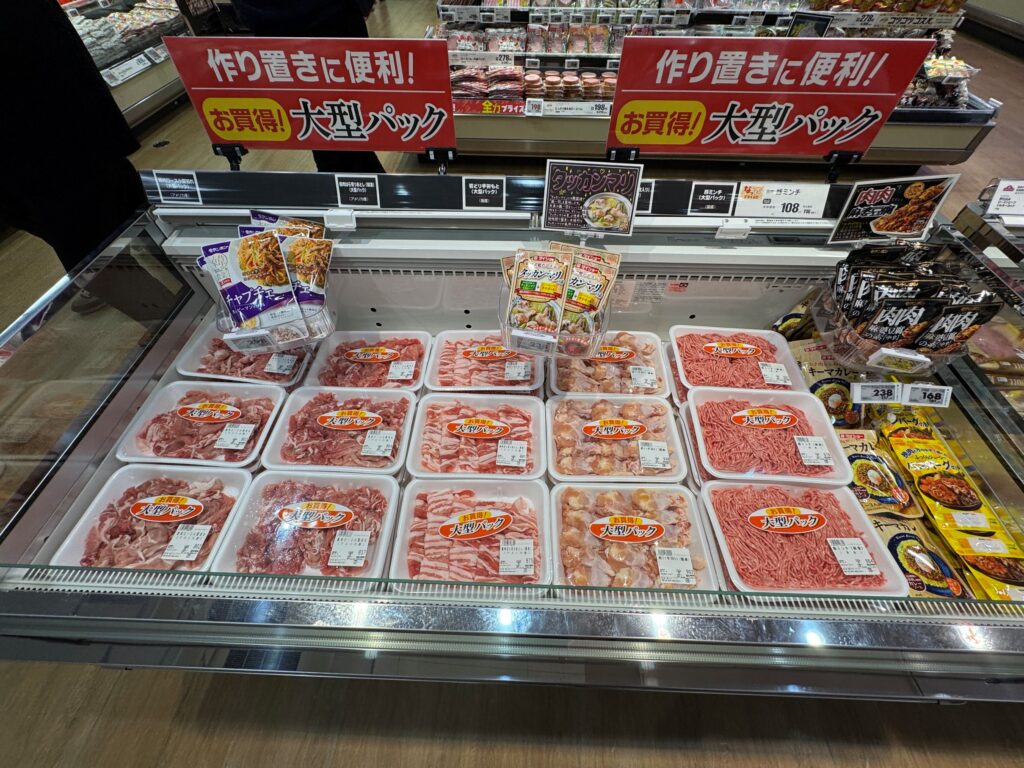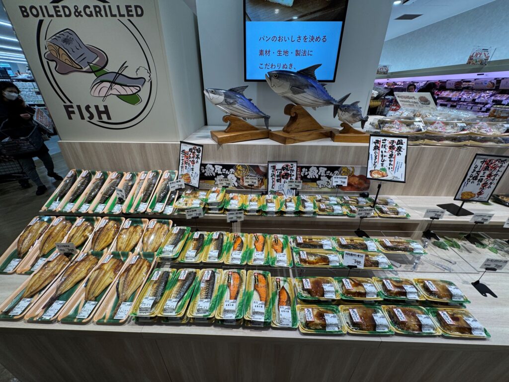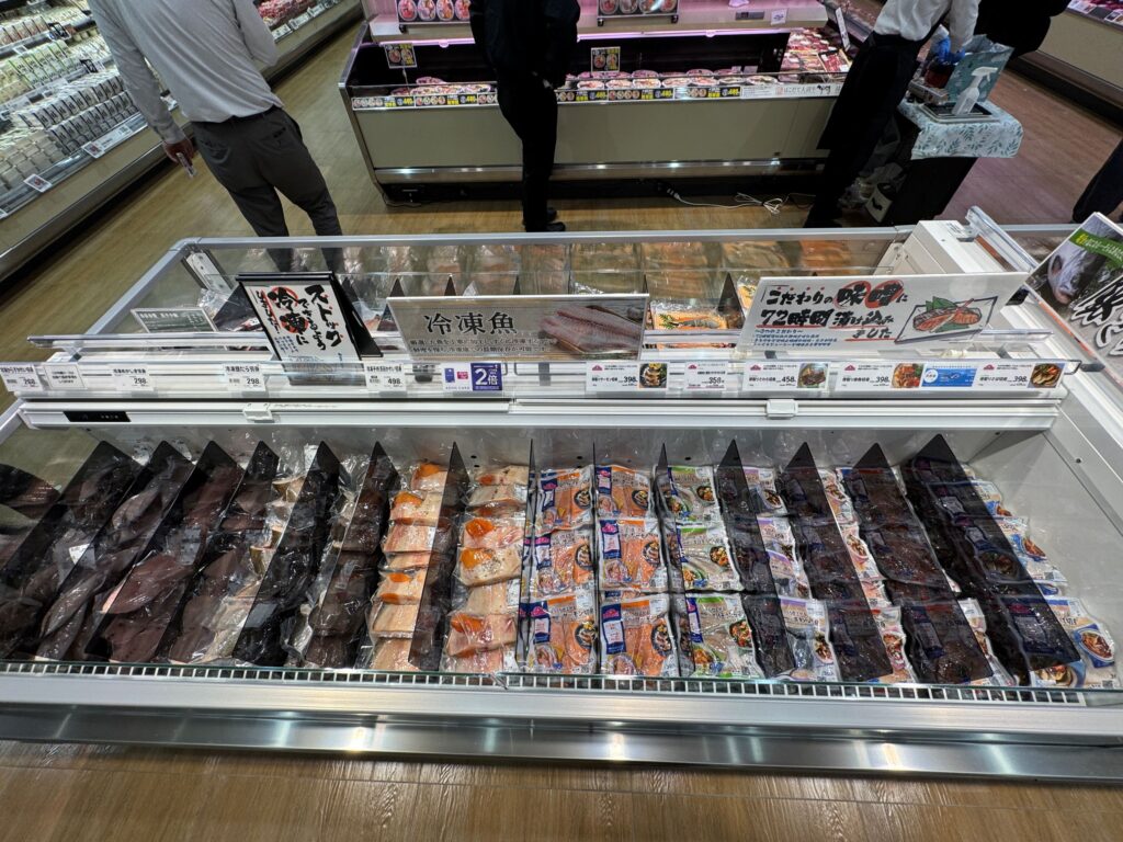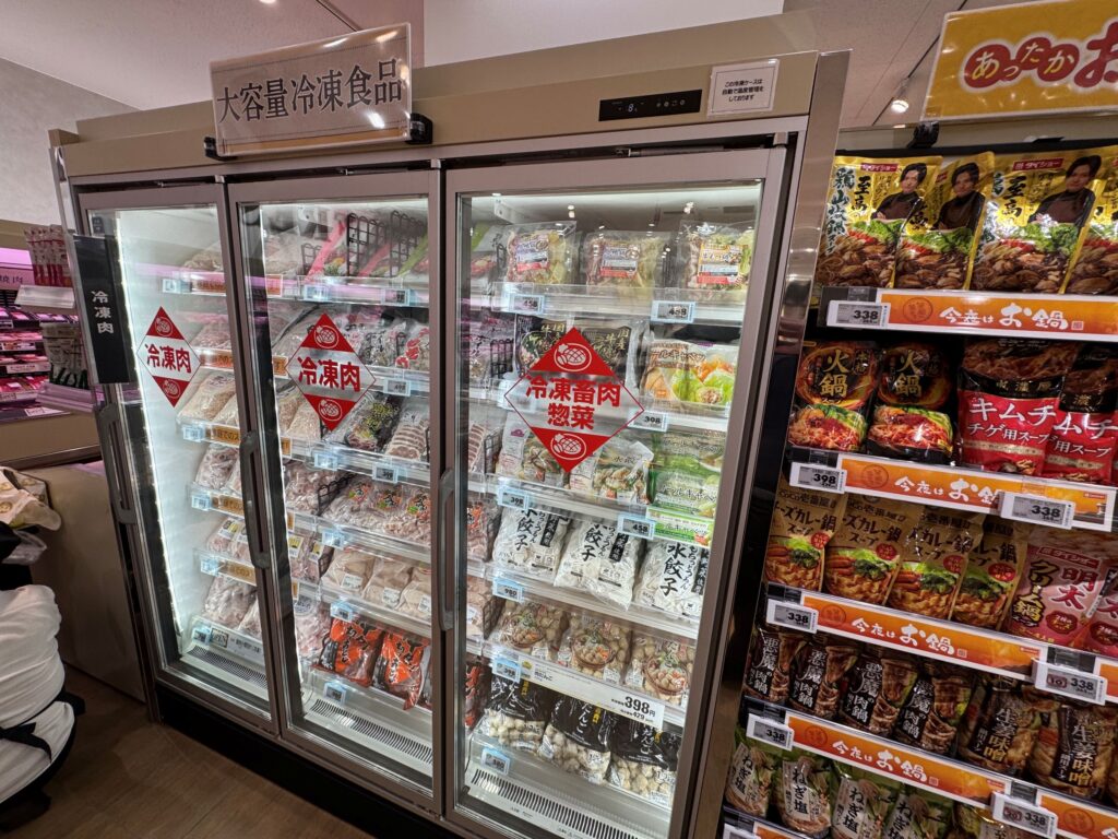 入口が2カ所あることを生かし、メインの入口側にはデリカ、もう1カ所の方には農産を配置。品揃えでは特に「簡単・便利がかなう品揃え」として、生鮮では骨取りした魚をレンジやフライパンで調理するだけの簡単メニュー、魚や肉、野菜をベースとした調理不要の個食鍋、デリカでは買い置きできるチルド弁当などを展開する他、広く展開するフローズンコーナーでは、アサイーなど人気のフルーツや簡単調理の食材を強化した。