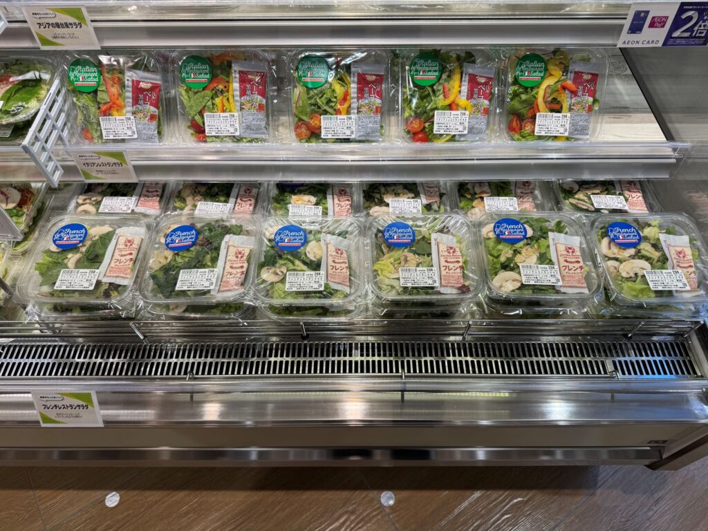 また、サラダ売場では生のマッシュルームとこだわりのドレッシングを合わせた「フレンチレストランサラダ」など、すぐに食べられるこだわりのメニューを多数取りそろえる。また、家族向けにはハンバーグにナポリタン、ポテトなどの副菜が入った大きな「おかずDELI」や週末限定のメガパック惣菜など、家族でシェアできる惣菜を販売する。