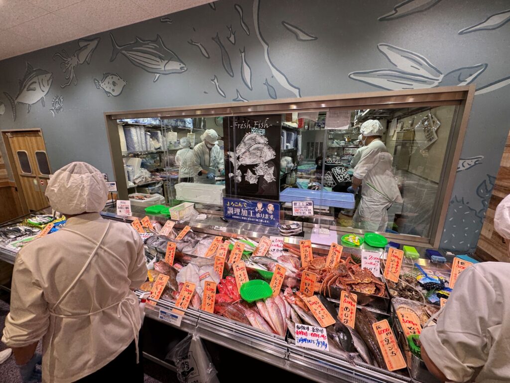 「ポイントとなるのはやはり魚。ここはやはりもう1回、原点に立ち返るということで、この規模であれば対面(販売)の魚(に取り組む)。今日(オープン日)も小田原、江の島(の市場)に買い付けにも行っている。損益が持たずに『3カ月後にはやめてしまう』といったことにならないように、この店の看板として、店長も含め、全員が『マルエツの意志』ということで、しっかりやり切る」(本間社長)