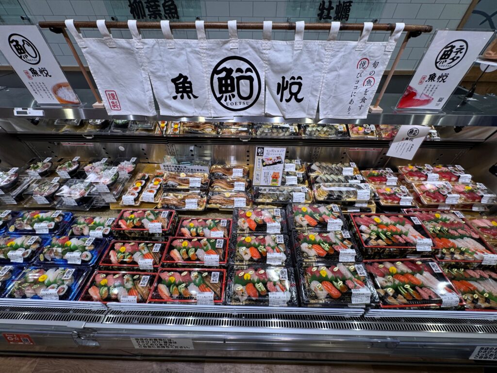 一方、鮮魚部門が展開する寿司である「魚悦」については200店近くに展開する同社を代表する寿司商品となっている。当然、BLiX茅ヶ崎店でも魚悦は壁面の平ケースでしっかりとコーナー化されている。