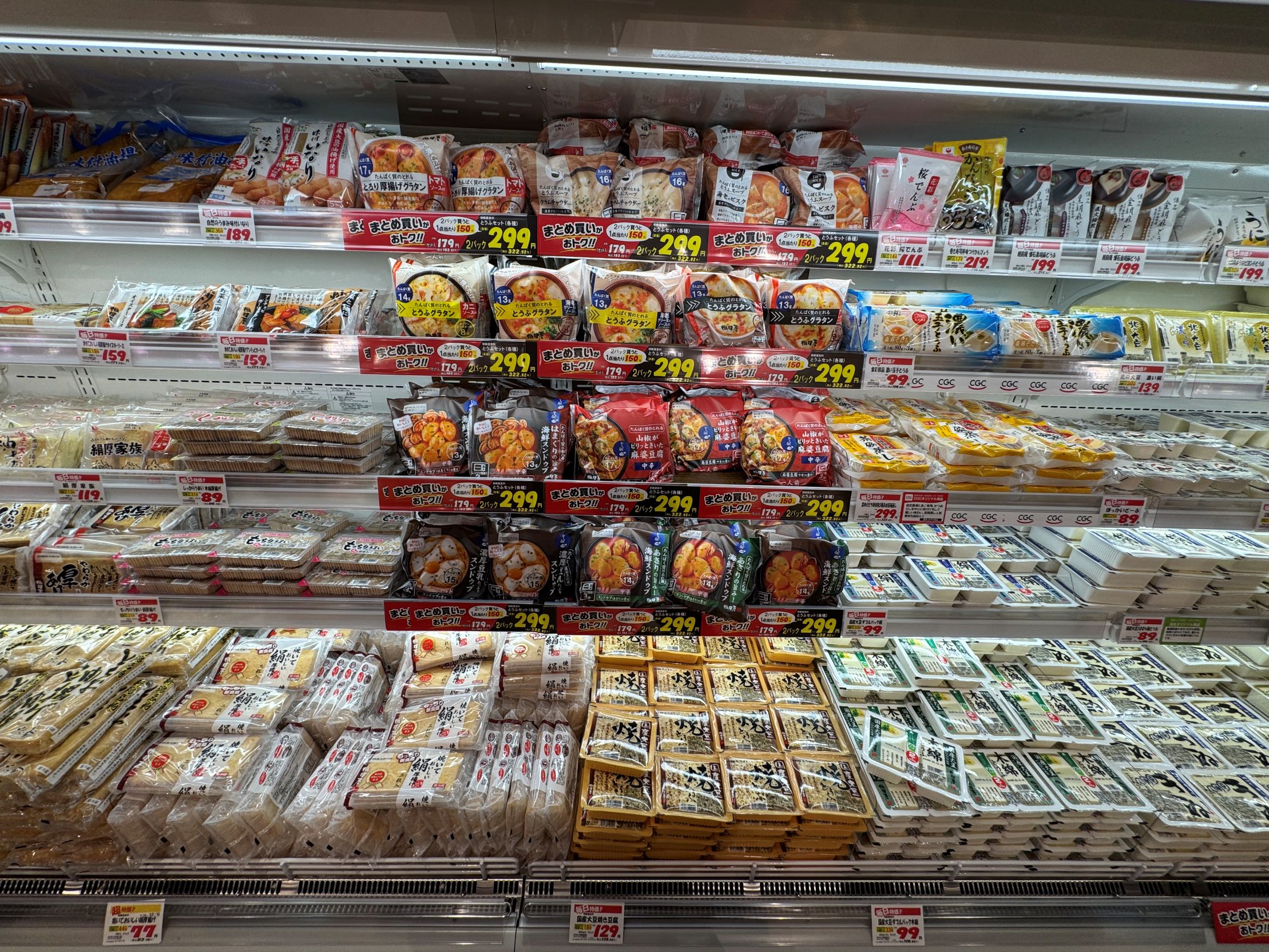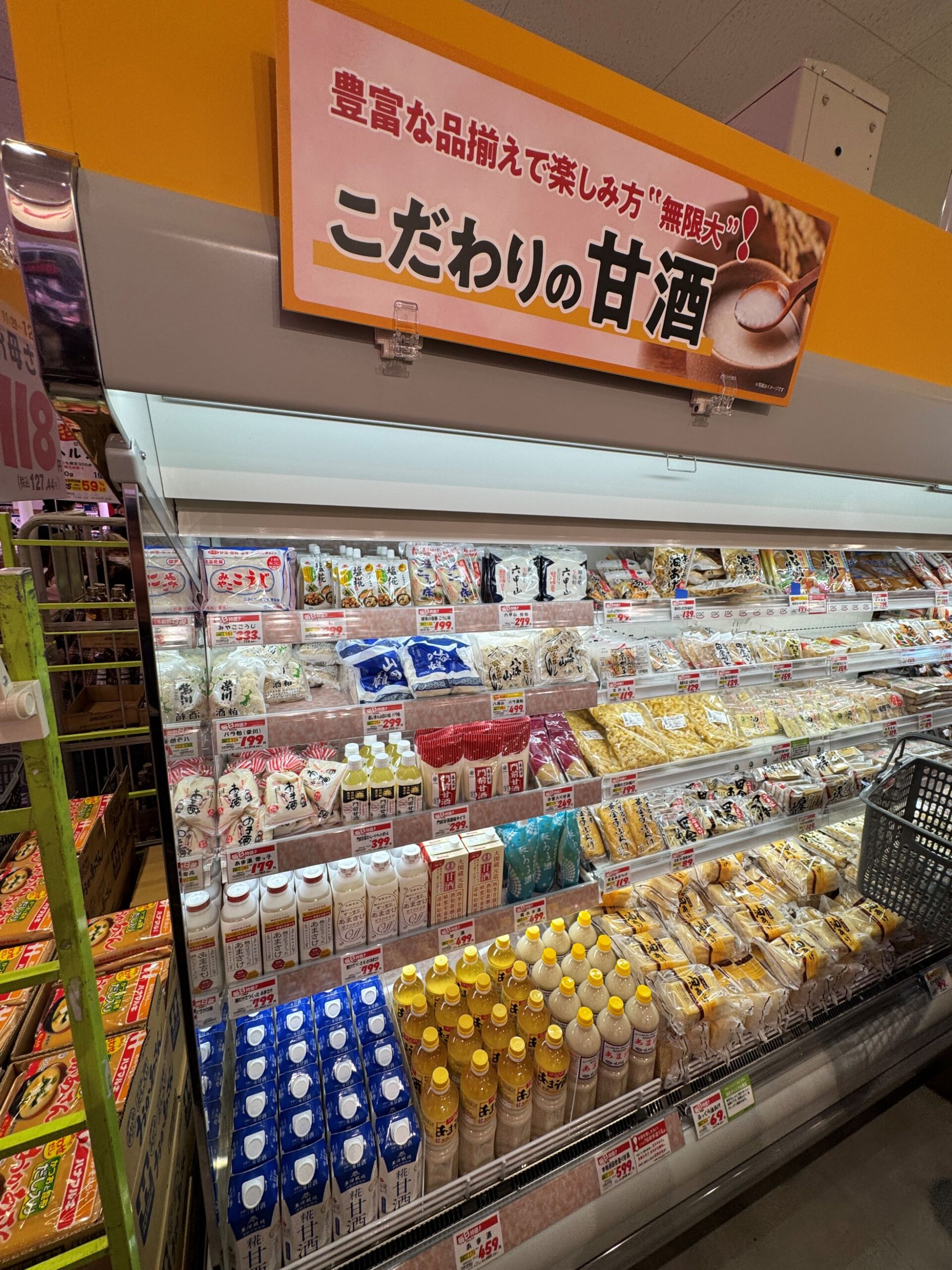 生鮮主体のため、グロサリーや日配、日用品は売場面積によって拡縮の対象となるが、東久留米店は売場が600坪を大きく超えていることから、一通り展開できたという。脇役のような位置づけの加工食品だが、売場づくりでは特徴もみられ、重要な役割を果たしている。