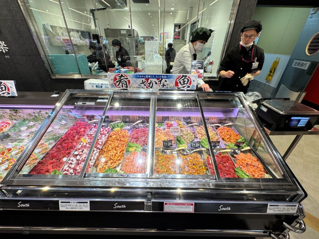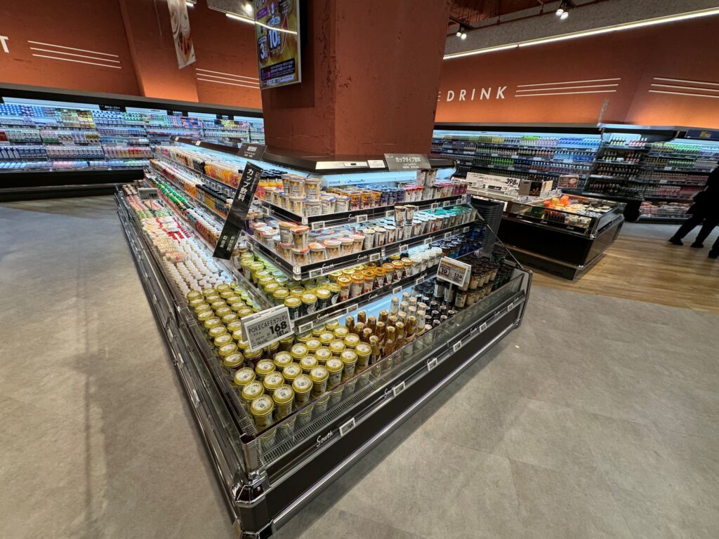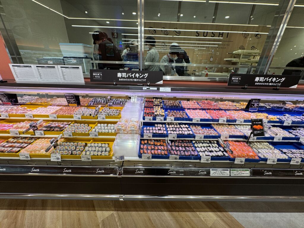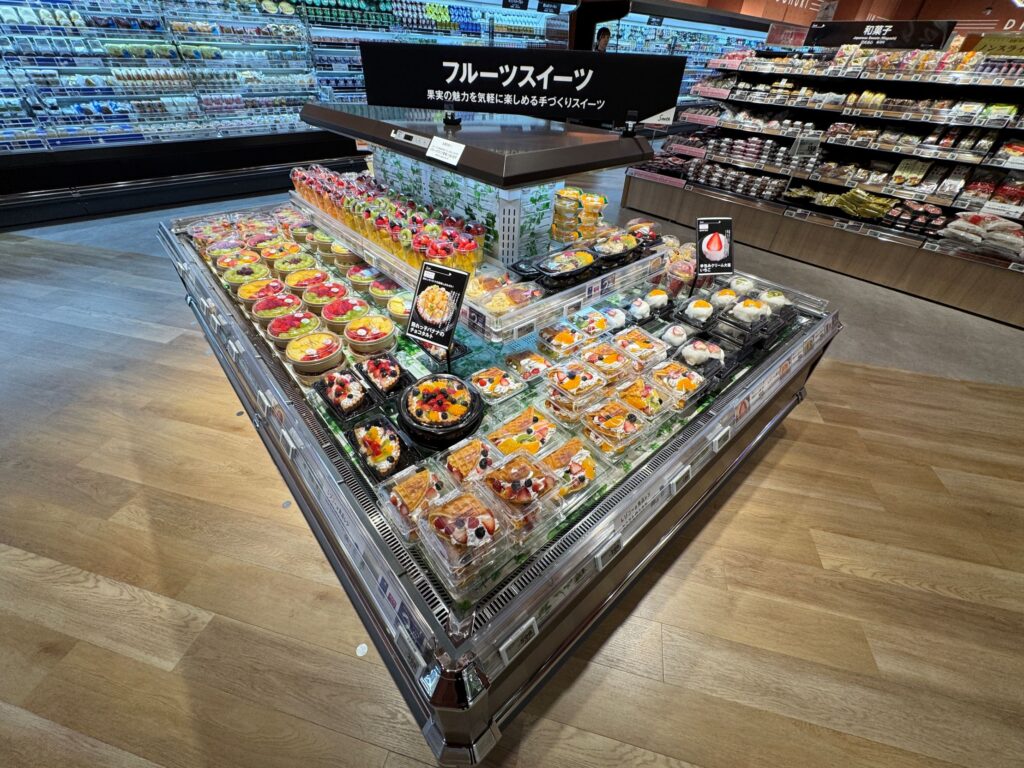 今回、新たなフレッシュデザートの売場を展開する他、選ぶ楽しさを提案すると共に手軽に買ってもらうことも狙い、寿司や銘菓、紅茶、コーヒーの一部商品を1個単位で提供する実験をしている。