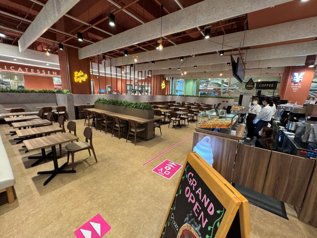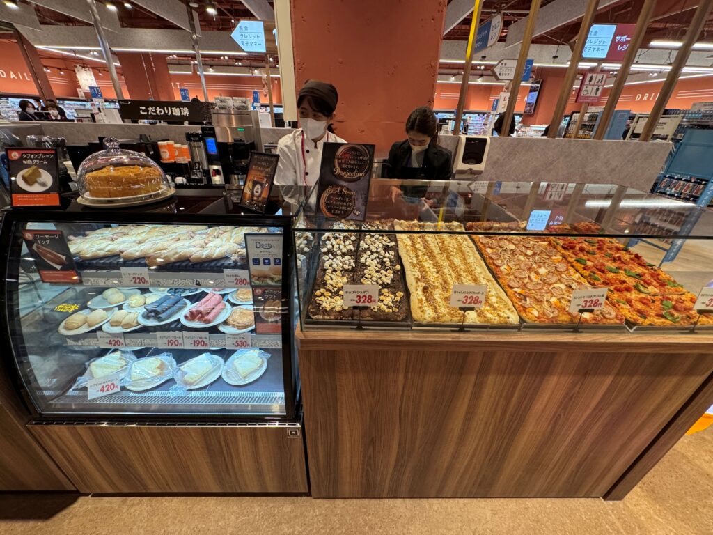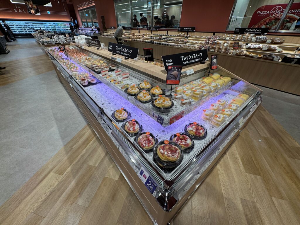 食品は「出来たて」「切りたて」「旬」にこだわる他、今回特に店内製造スイーツを強化した。1階ではライブ感あるデリカ、ベーカリー、リカーを展開。その上でイートインコーナーをフロアの中央に配置するなど、より体験型を実感しやすいレイアウトになっている。