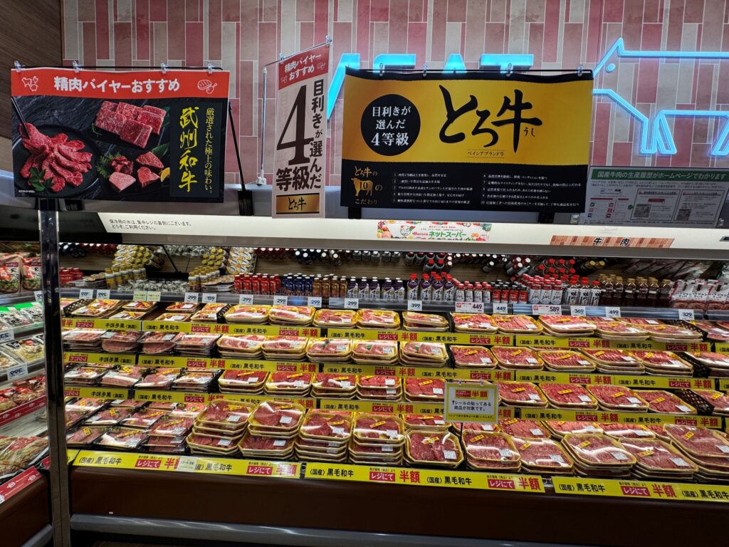 生鮮では特に精肉を強化。立地する狭山市で肉類の支出が多いことを受け、精肉売場を同規模の既存店と比べ15%ほど拡大したという。