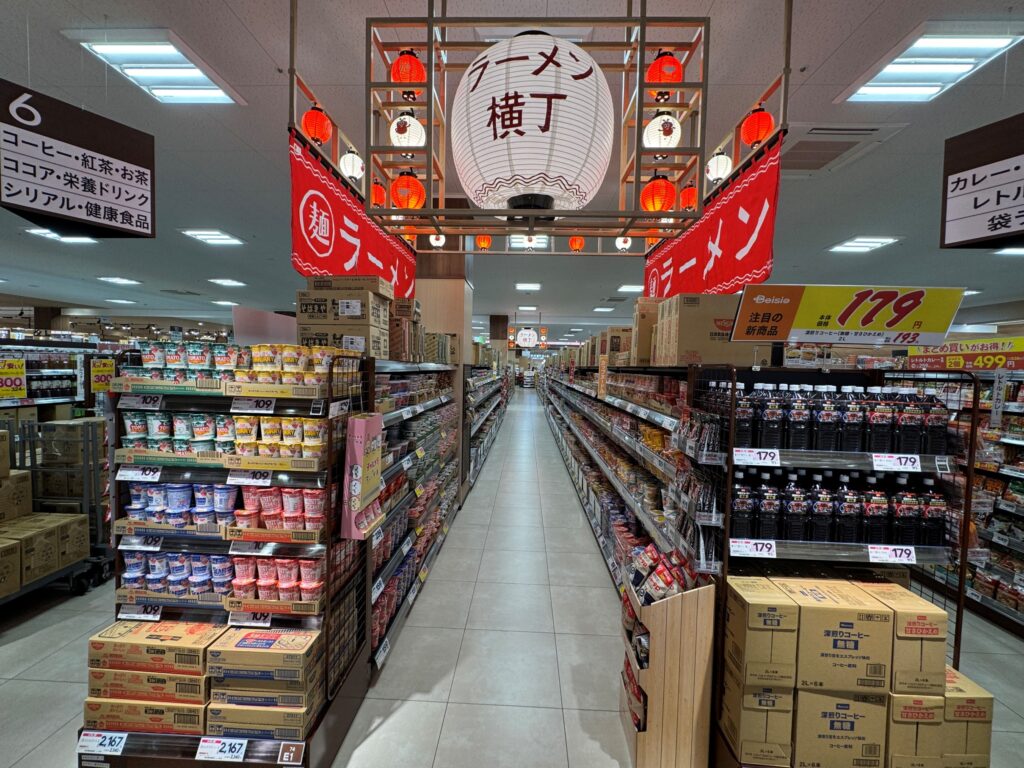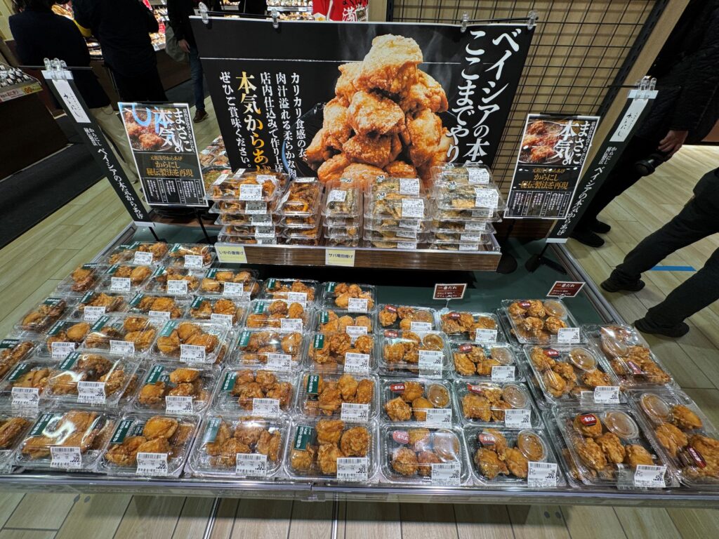 核店のベイシアは、ここのところ出店の主力フォーマットとなっているフーズパークを冠しつつ、その都市型版のような店となっている。改めて今回も含め、都市部への出店が視野に入ってくることから、商品面でも強化が図られた。