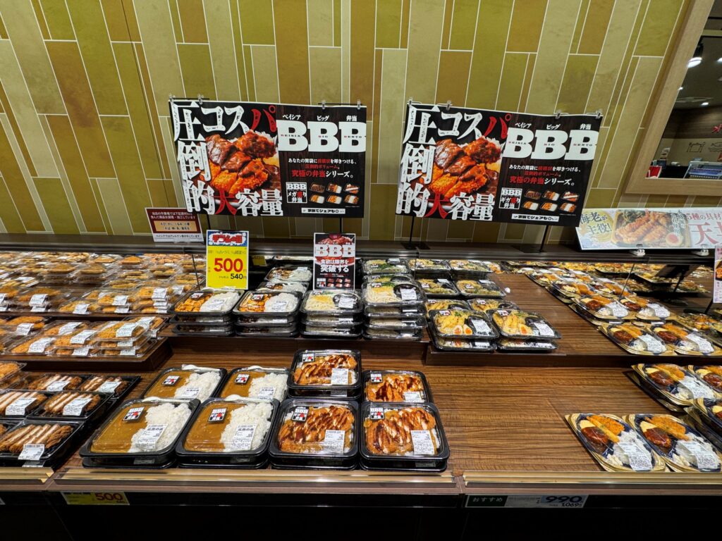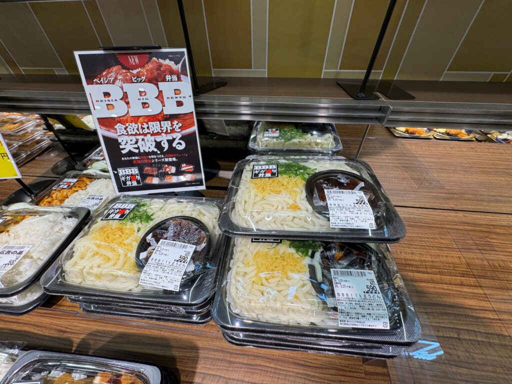 また、ボリュームとコスパが魅力のBBB(ベイシアビッグ弁当)も8種類ラインアップ。BBBでは新狭山店限定で「ガーリックペッパーポークステーキ弁当」(本体価格990円)も展開する。