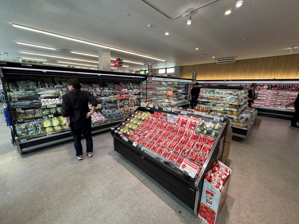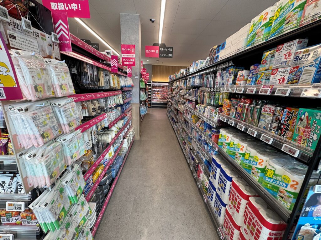 生活用品については既存店でも一部店舗で導入している100円均一ショップのダイソーの商品について、大幅に拡大した新しいパターンとしている。「生活に必要なものがそろう」という考え方から来るもので、新モデルとしての対応だという。この辺りは都市部の店だからこそ、一定のワンストップショッピングが求められるという側面もあるだろう。
