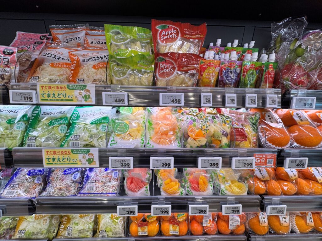 デリカ同様、強化部門の青果ではベーシックな品揃えに加え、伸長しているカットフルーツやカットサラダ、簡便野菜などを一通り展開。青果を強化しているのはやはり集客部門であり、来店頻度を高めるためにも重要な商材であるという位置付けであるためだ。