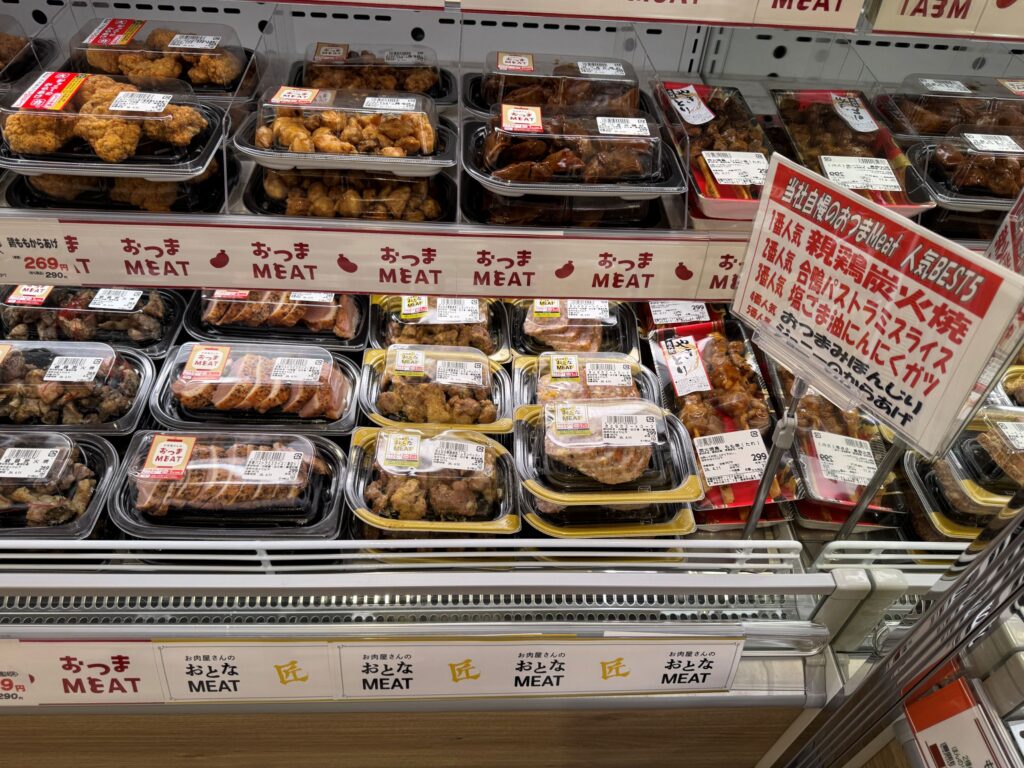 また、こちらも全社的な展開商品である肉惣菜の「おつまミート」や魚惣菜の「おつなフィッシュ」など即食対応の商品については、売場面積が限られるマルエツ プチのためデリカ売場での集合展開としている。今回、西横浜駅前店のオープンとほぼ同時期に新たな商品ラインとして精肉惣菜のアッパーグレードシリーズ「おとなMEAT」の展開が始まった。