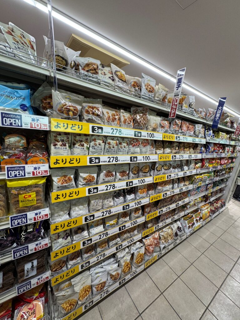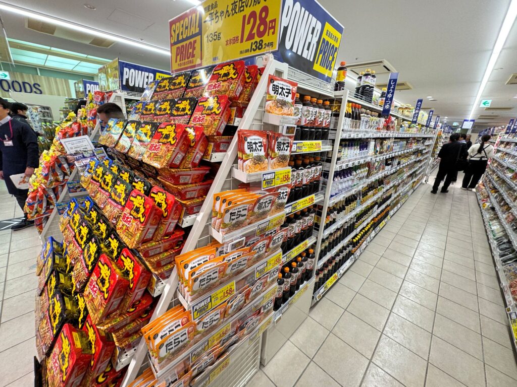 今回も価格政策は三田店と共通で、イオンのプライベートブランド(PB)商品の低価格ラインのベストプライスも活用しながらナショナルブランド商品も含めて強化。同時にSKUもかなり絞り込まれ、改装前は売場面積256坪で約9005そろえていたSKU数は、今回同263坪にわずかながら売場が広がったにもかかわらず、約6660にまで、約74%の水準にまで絞り込まれた。